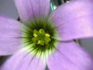 體式顯微鏡下的花房,黃色為花粉