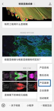 為了更好的服務(wù)與喜愛明美產(chǎn)品的朋友們,明美產(chǎn)品宣傳畫冊已正式上線,進(jìn)入公眾號(微信訂閱號:明美顯微成像),點擊下方菜單欄 明美互動-產(chǎn)品畫冊可直達(dá)畫冊電子版!
