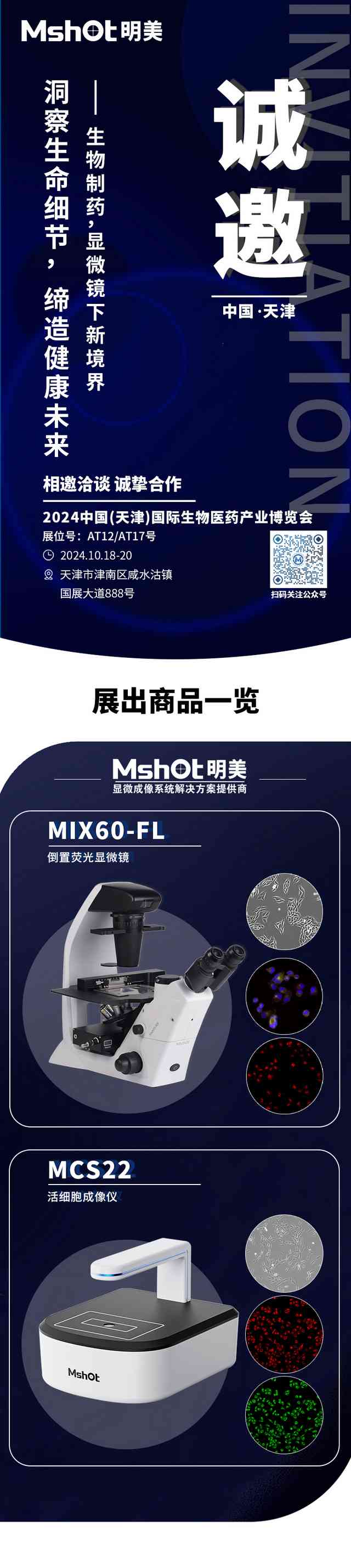 2024中國(天津)國際生物醫(yī)藥產(chǎn)業(yè)博覽會將于10月18-20日在天津舉行,MSHOT明美將攜倒置熒光顯微鏡MIX60-FL、活細胞成像儀MCS22等重磅產(chǎn)品亮相本次會議,歡迎蒞臨參觀指導(dǎo)。